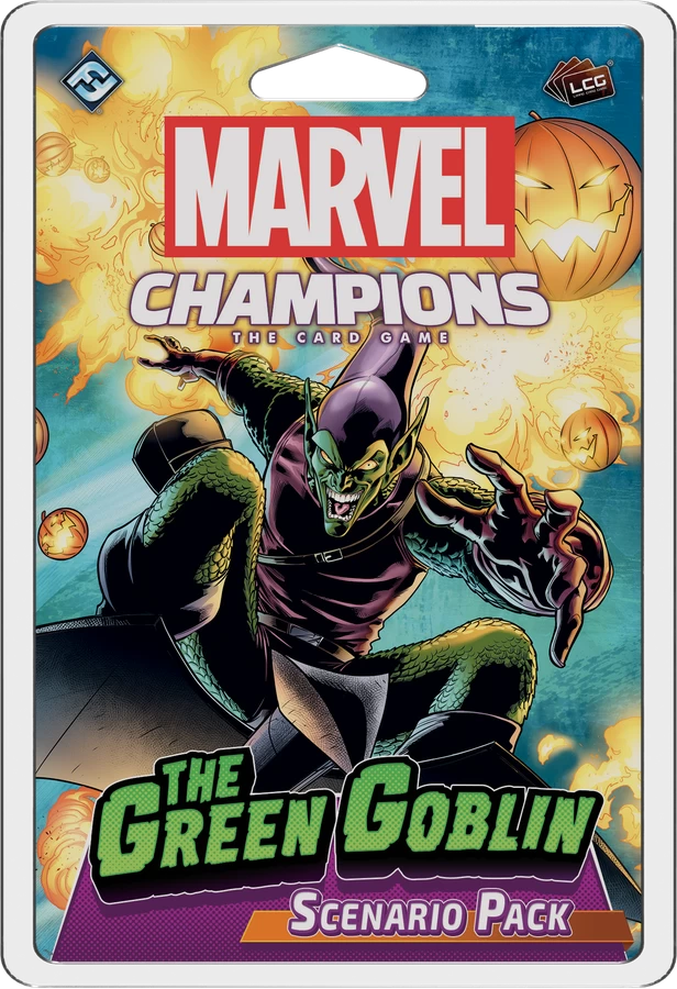 Continue your adventures in the Marvel Universe with The Green Goblin Scenario Pack for Marvel Champions: The Card Game! This 78-Card pack introduces two new scenarios and four modular encounter sets showcasing the devious Norman Osborn and his sadistic alter-ego, the Green Goblin.