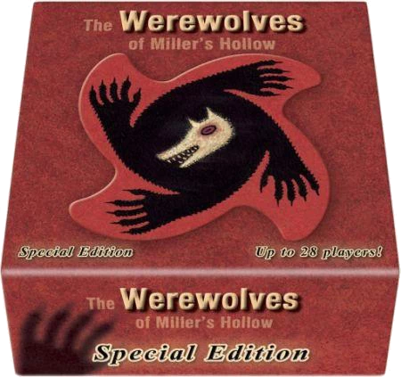 Werewolves of Miller’s Hollow is a game that takes place in a small village which is haunted by werewolves. Each player is secretly assigned a role – Werewolf, Ordinary Townsfolk, or special character such as The Sheriff, The Hunter, the Witch, the Little Girl, The Fortune Teller and so on… There is also a Moderator player who controls the flow of the game. The game alternates between night and day phases. At night, the Werewolves secretly choose a Villager to kill. During the day, the Villager who was killed is revealed and is out of the game. The remaining Villagers (normal and special villagers alike) then deliberate and vote on a player they suspect is a Werewolf, helped (or hindered) by the clues the special characters add to the general deliberation. The chosen player is “lynched”, reveals his/her role and is out of the game. Werewolf is a social game that requires no equipment to play, and can accommodate almost any large group of players.