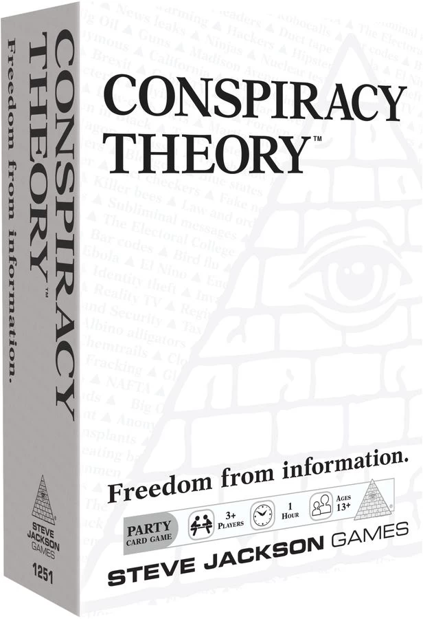 In Conspiracy Theory, each player takes turns acting as the judge to read a card outlining a conspiracy. Then the other players choose from their own cards, competing to create the wildest, silliest, or most believable theory. Every turn, each player tries to convince the table — and more importantly the judge — that their conspiracy is the truth.