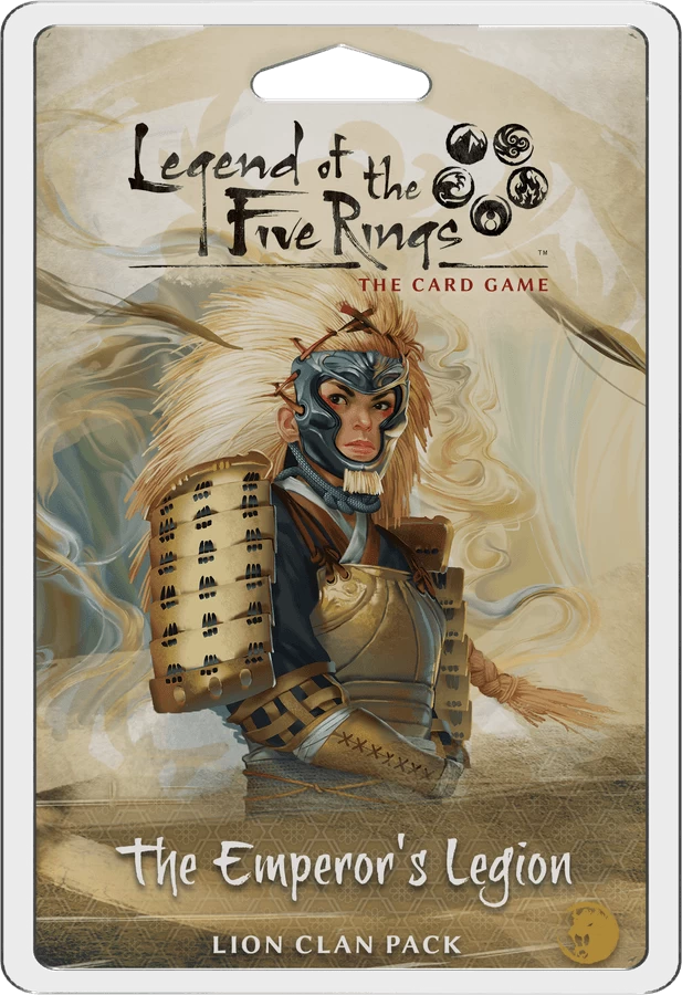 The Emperor’s Legion, a clan pack for Legend of the Five Rings: The Card Game, spotlights the Lion Clan with 78 new cards (three copies of twenty-five different cards and one copy each of three different cards). Here, look for an emphasis on powerful recursion effects, unparalled Bushi, and cards that exact vengeance on your opponent for daring to challenge the might of the Lion.