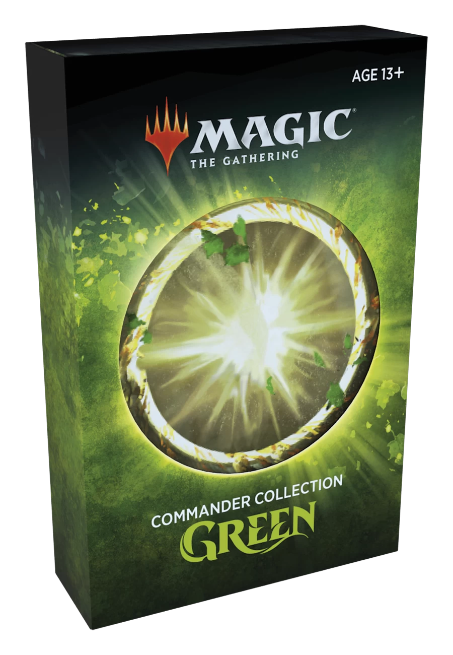 Commander Collection: Green is a boxed set of eight reprinted cards themed to one color and what it does best—in this case green, the color of big mana and big creatures! These cards have been selected to showcase the things green mages love to do in Commander, and each one has been given brand-new art with loads of references to popular legendary characters. They’ll be right at home in your favorite green deck alongside their legendary counterparts!