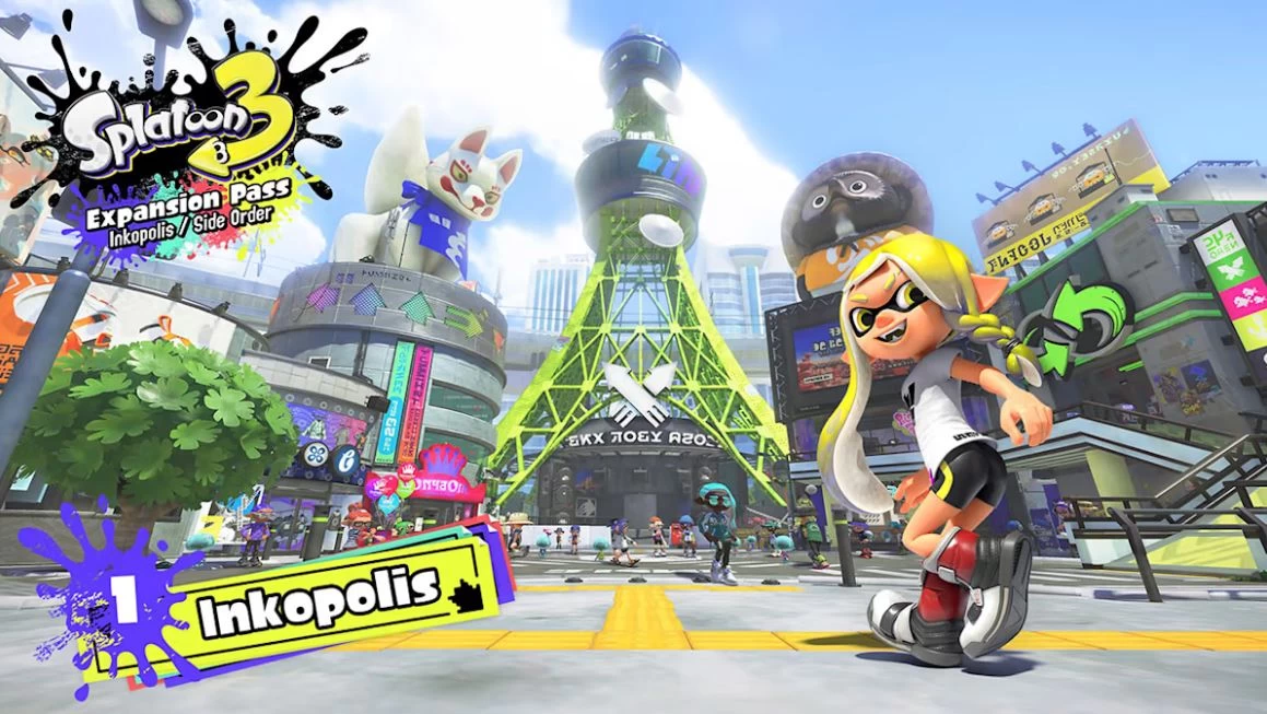 Take a deeper dive into the expansive world and colorful characters of the Splatoonâ„¢ series. Make Inkopolis from the first Splatoon game your stomping (err…splatting?) grounds with the first wave of the Splatoon 3 Expansion Pass paid DLC*! Another major metropolis of the Splatoon universe, Inkopolis has changed a bit in the past several years with some new shopkeepers. Ready to jam? Then come to Inkopolis to see some fresh Squid Sisters performances during Splatfests**.